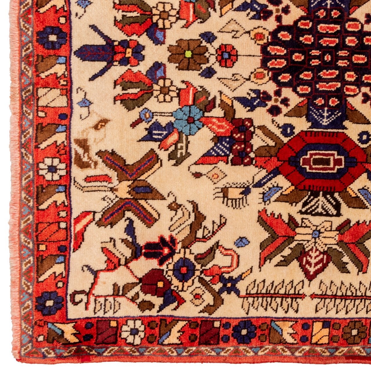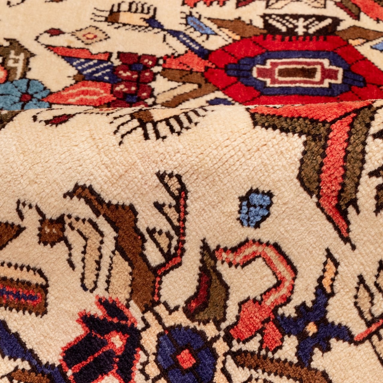 Afshari Rug from Shahr-e Babak, a region renowned for its tribal weaving heritage. Handwoven with wool on a cotton foundation, it features a soft cream palette and the balanced, detailed patterns characteristic of Afshari artistry. This Afshari Rug brings warmth, cultural depth, and timeless elegance to any space.