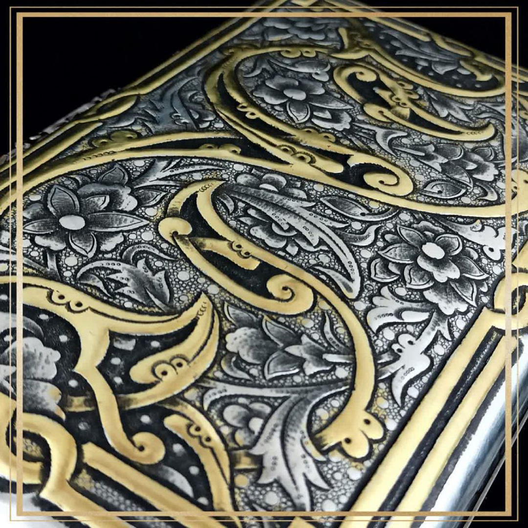 This art has captivated artists for centuries due to the durability and longevity of metalwork compared to other materials. Contemporary artisans first coat the inner or underside of a metal dish or tray, usually made of silver or gold, with a tar and plaster mixture. This process reduces hammering noise and prevents potential surface damage. Next, they draw the design on the metal, select the appropriate burin, and carefully hammer its end to carve precise grooves and patterns. The depth and intensity of these engravings vary based on the force applied.