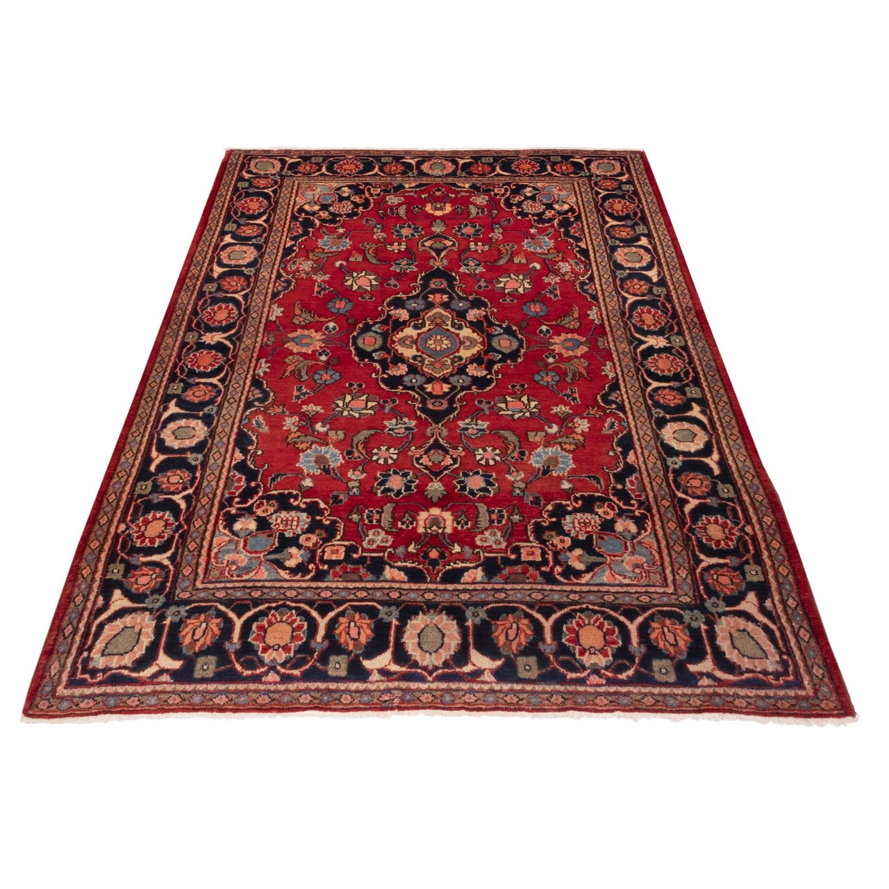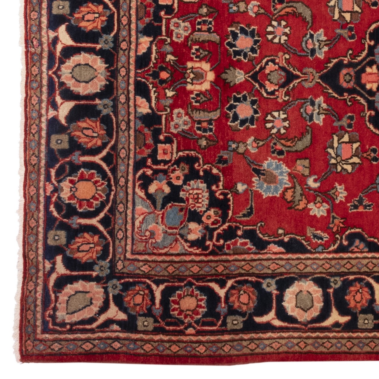 Kashan Rug with its rich red tones and classic Kashan detailing reflects the refined weaving tradition of Isfahan. Handcrafted in wool on a cotton foundation, it showcases elegant floral motifs and balanced composition, making this Kashan Rug a timeless addition to any refined interior.
