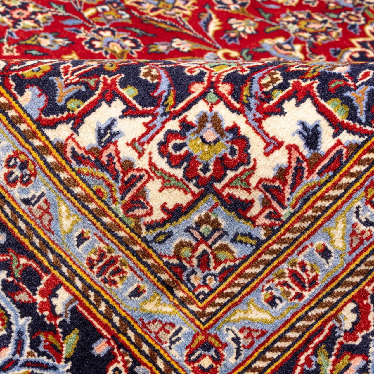 Kashan Rug crafted in the renowned weaving tradition of Kashan, this piece blends rich red and navy tones with a classic wool-on-cotton structure. Its elegant design and natural materials bring warmth, depth, and timeless character to any interior. With its vintage origin and enduring craftsmanship, this Kashan Rug serves as a refined and collectible addition to both modern and traditional spaces.