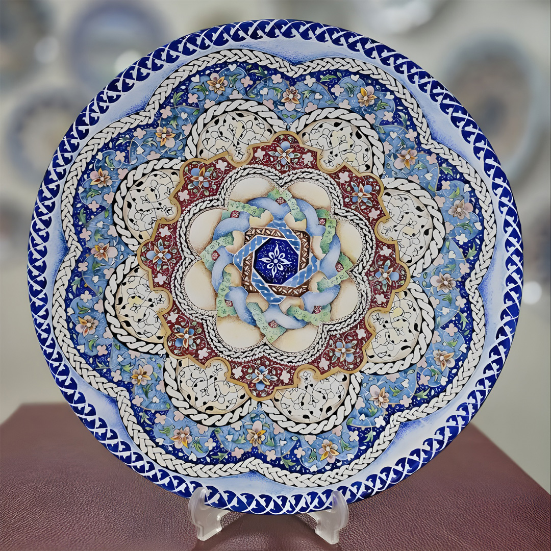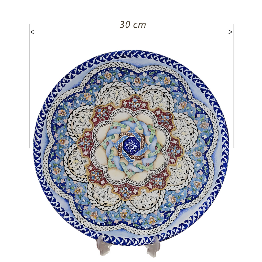 Knot Model Enamel Plate is a mesmerizing piece of Persian craftsmanship, featuring intricate knot-like patterns at the center that symbolize unity and harmony. Made from durable copper and adorned with vibrant floral motifs, the Knot Model Enamel Plate is ideal for elegant home décor or meaningful gifting.