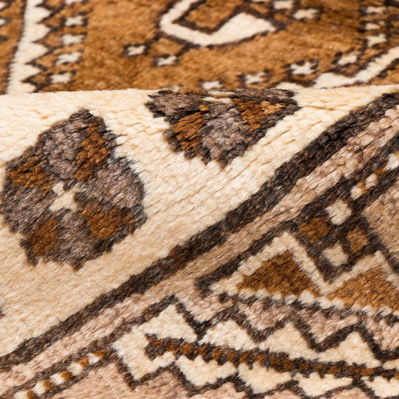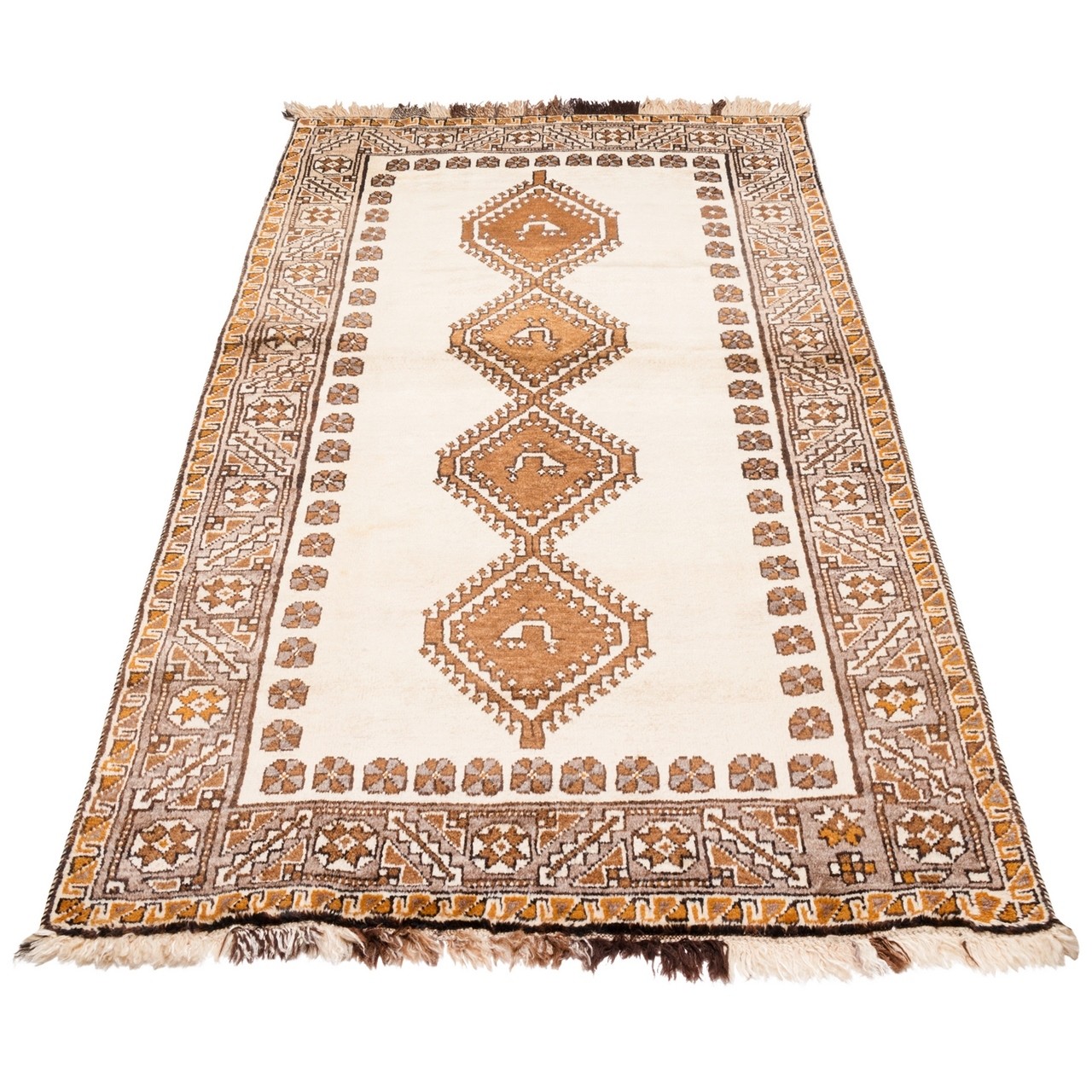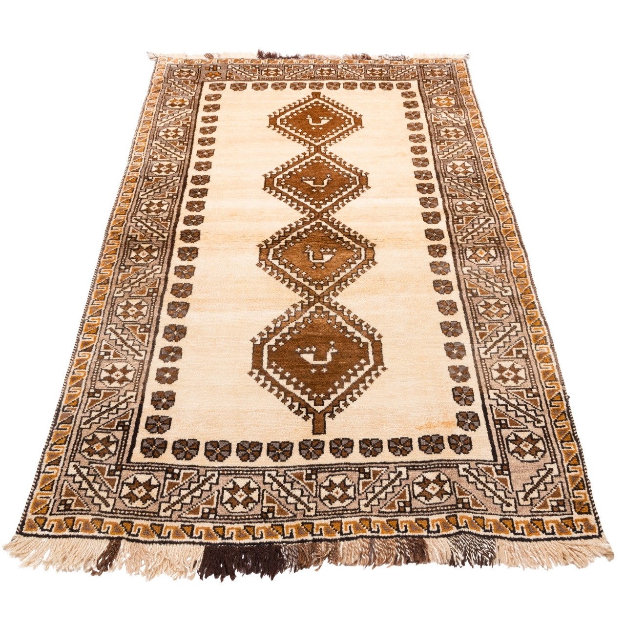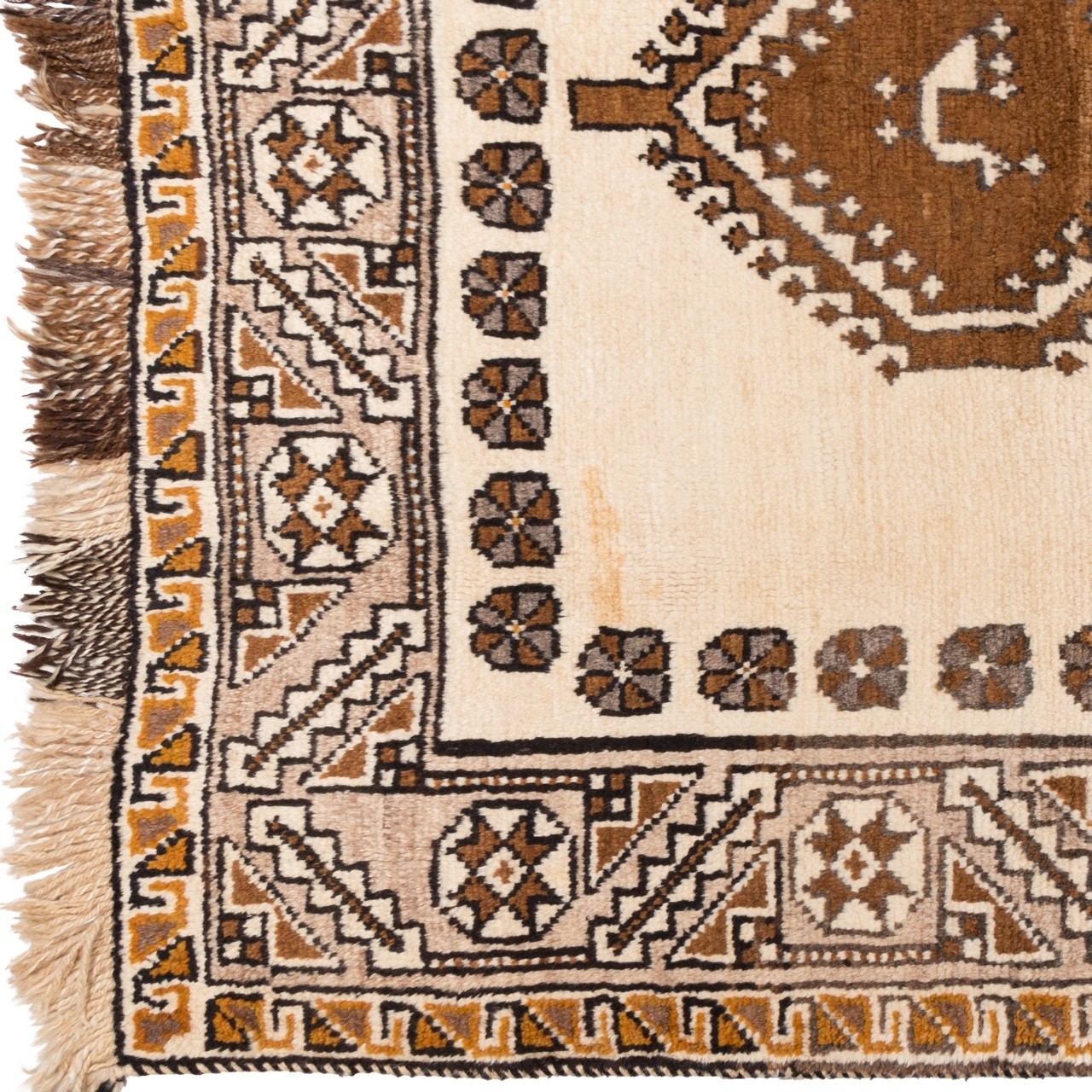 Qashqai Rug is a fine example of traditional tribal weaving from the nomadic and rural regions of Fars Province, crafted entirely by hand using soft, high-quality wool. Its repeated medallion (termed toranj) layout and geometric motifs—created through straight, angular lines instead of curves—showcase classic Qashqai artistry. Naturally dyed with traditional methods, this Qashqai Rug offers rich, stable colors, notable thickness, and a warm, authentic character that makes it both a decorative and culturally valuable piece.