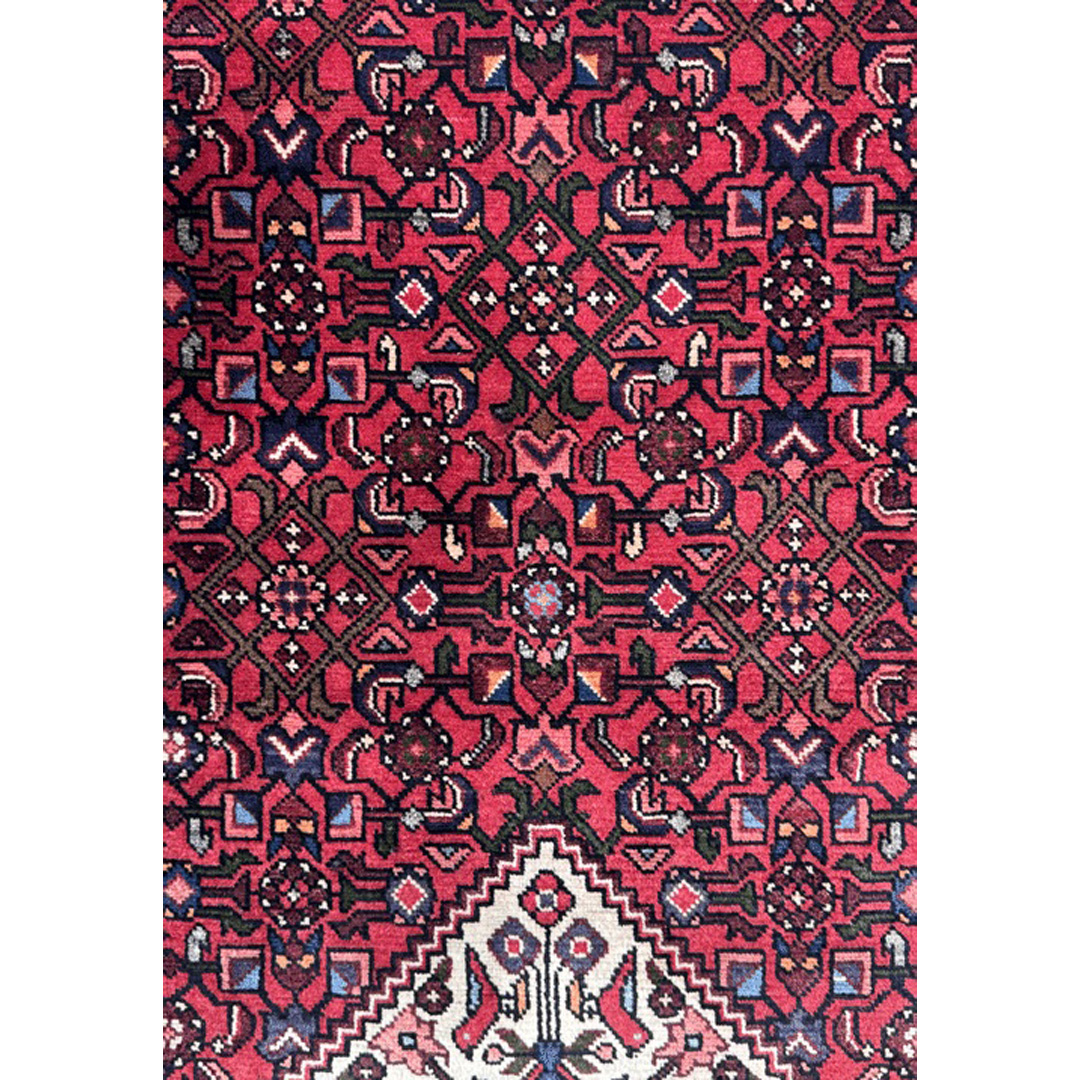 Sixteen Birds Model Malayer Rug is a unique creation from West Iran’s Zagros region, woven around 1975 A.D. Its red background highlights the intricate design that symbolizes harmony and tradition in Malayer craftsmanship.